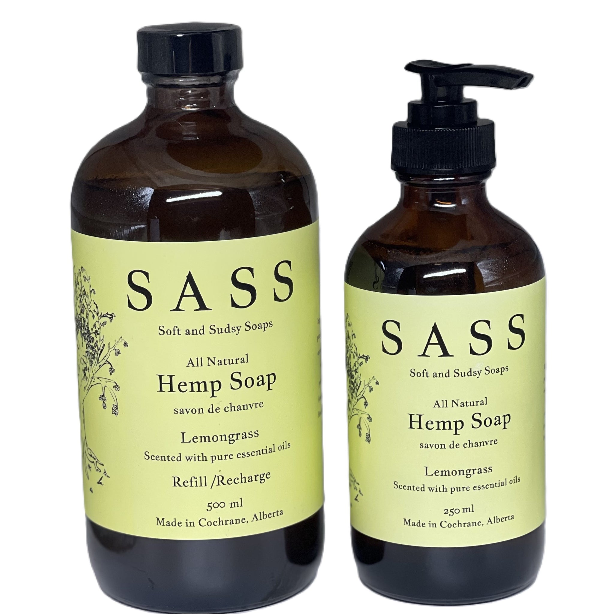 Ingredients: glycerin, potassium olivate, aqua, *potassium cocoate, *potassium cannabis sativa seed (hemp) oil, potasium ricinus communis (castor) seed oil, cymbopogon flexuosus oil (lemongrass) oil *organic