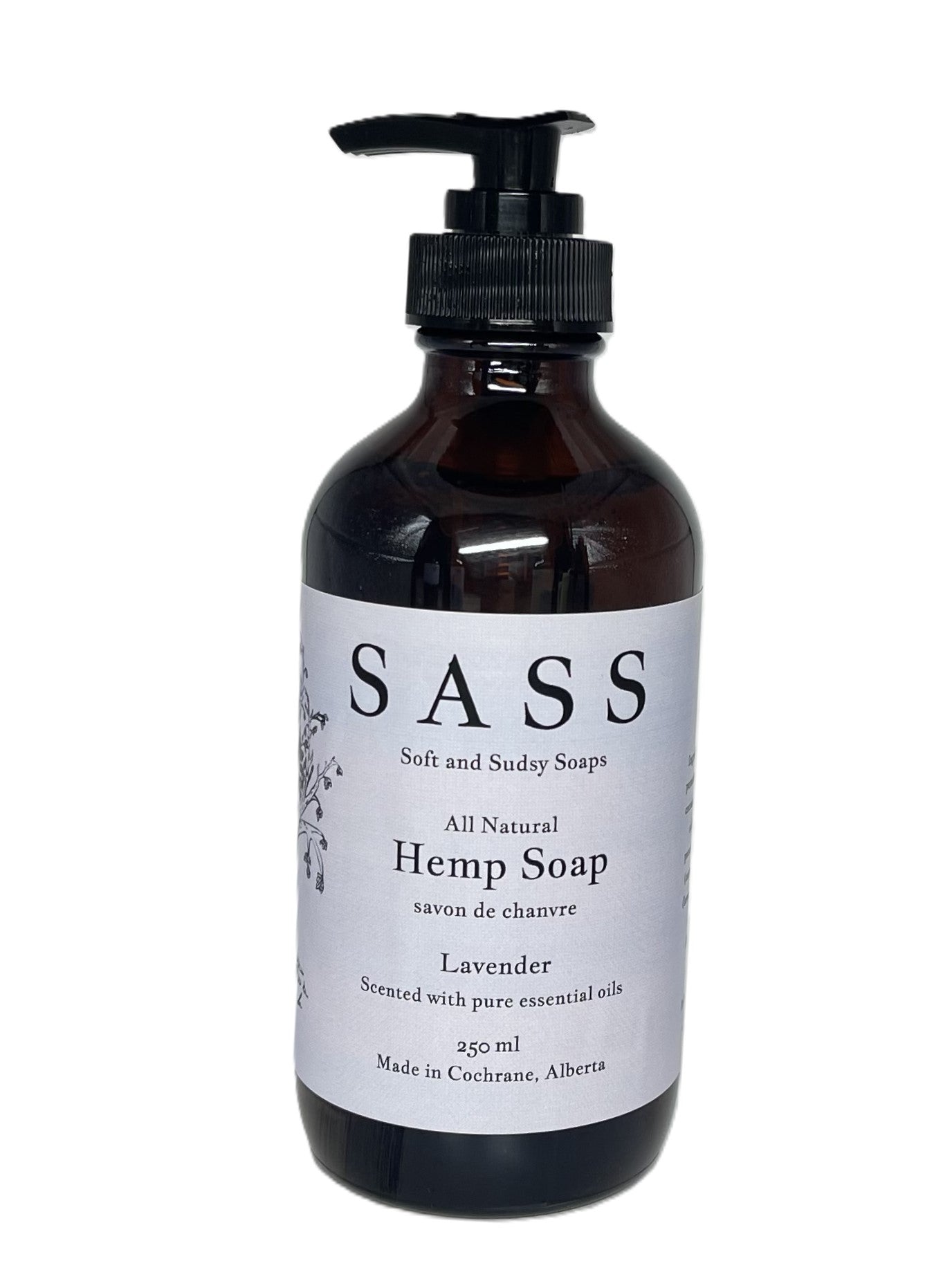 Ingredients: glycerin, potassium olivate, *potassium cocoate, *potassium cannabis sativa seed (hemp) oil, potasium ricinus communis (castor) seed oil, lavandula (lavender) angustifolia oil,